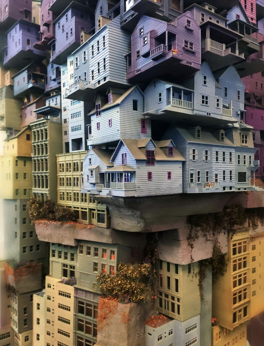 En el arte plástico, la distopía arquitectónica se traduce en paisajes de ruina, fragmento y simulacro. Las obras de Anselm Kiefer o de Gordon Matta-Clark dialogan con la materialidad del colapso, evidenciando las grietas del proyecto moderno. Según Hal Foster (1996), el arte contemporáneo usa la estética del trauma y la ruina para revelar lo reprimido del progreso: la violencia y el desarraigo que acompañan a la modernidad arquitectónica.